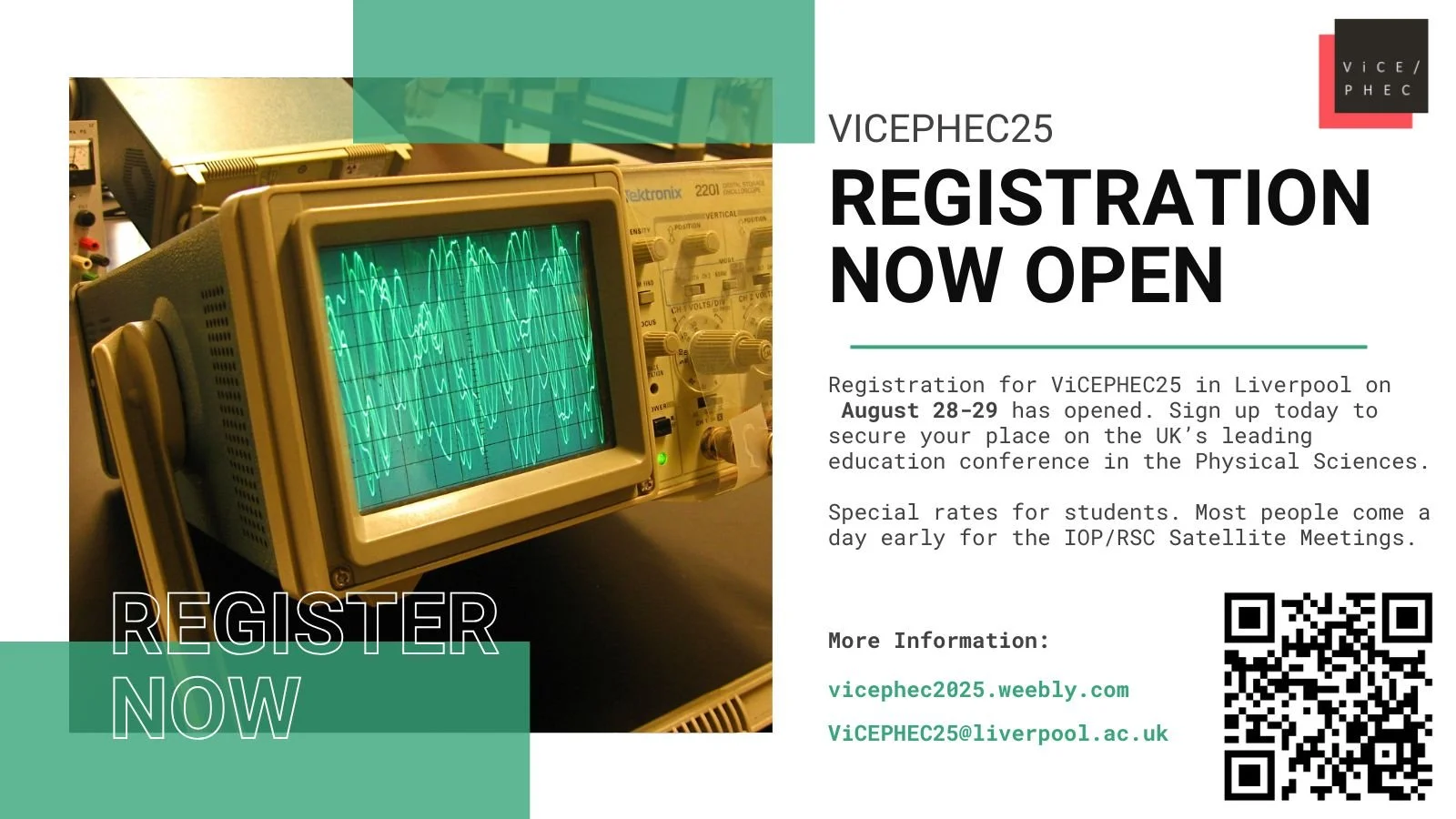 A flyer for ViCEPHEC25, with a link to the conference website at https://vicephec2025.weebly.com